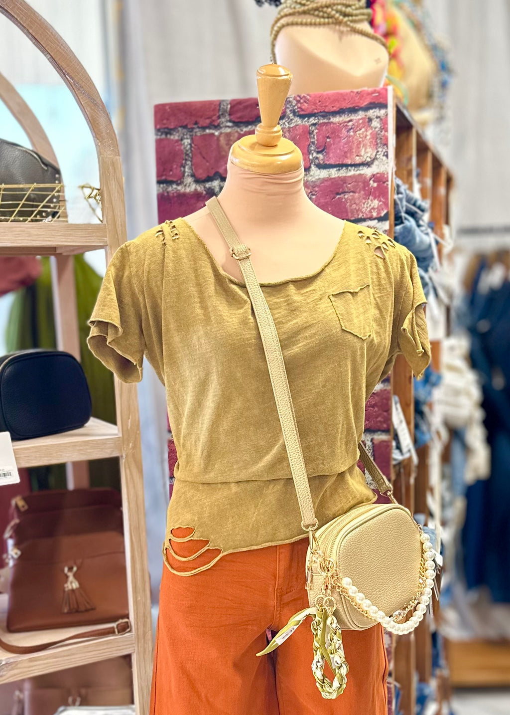 Distressed Washed Olive T